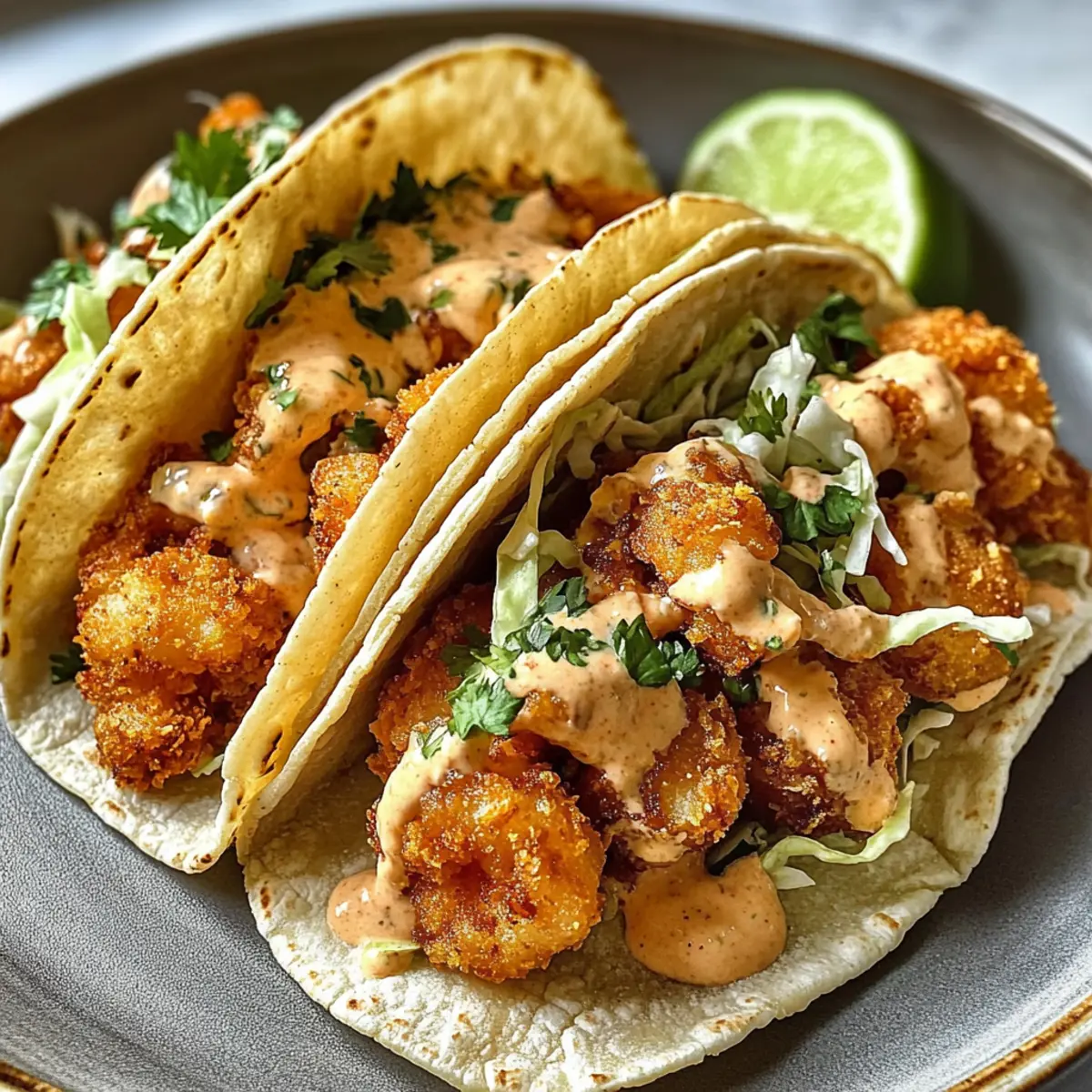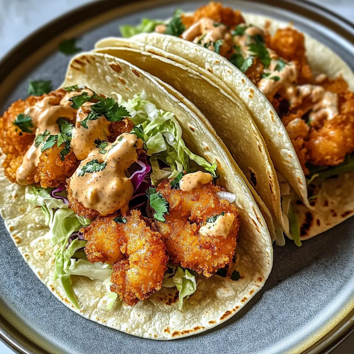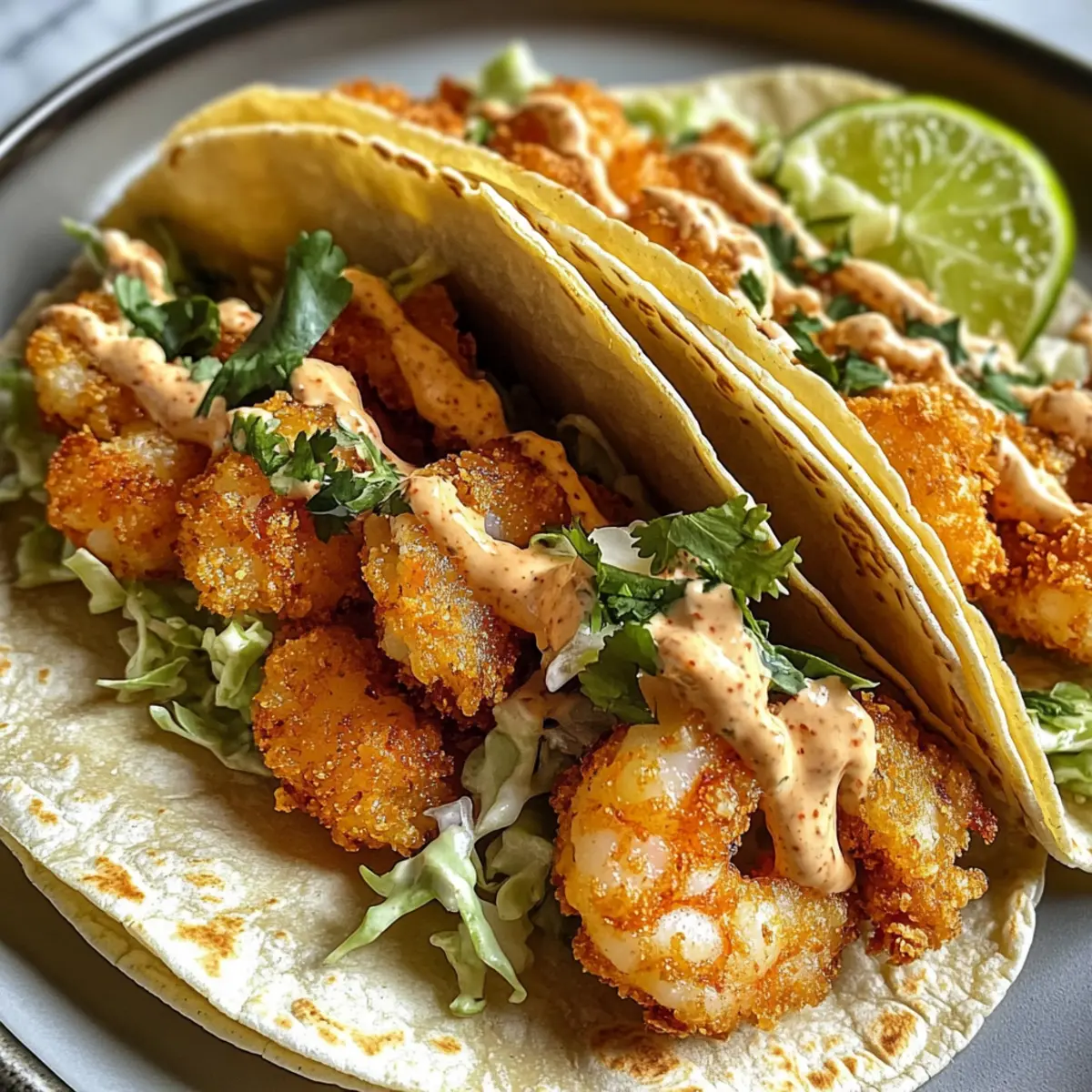- Serve the tacos immediately while the shrimp are still warm and crispy, drizzling the creamy sauce on top.