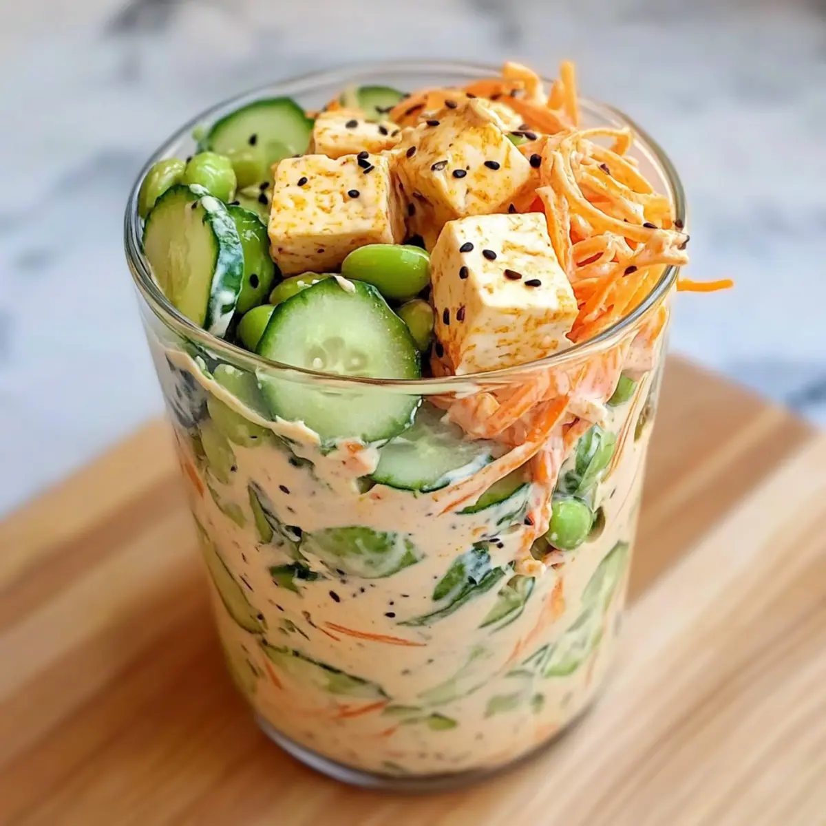 These Creamy Asian Cucumber Salad Bowls are perfect for meal prep enthusiasts looking to save time on busy weeknights! You can slice and layer the cucumbers, tofu, edamame, and carrot up to 24 hours in advance, making sure to keep the dressing separate until you’re ready to serve to maintain its fresh flavor and texture. Simply store the layered salad components in an airtight container in the refrigerator. When you’re ready to enjoy, drizzle the creamy dressing over the top, mix gently, and garnish with sesame seeds and nori flakes. This way, you can savor a refreshing and crisp salad bowl with just a few moments of final preparation!