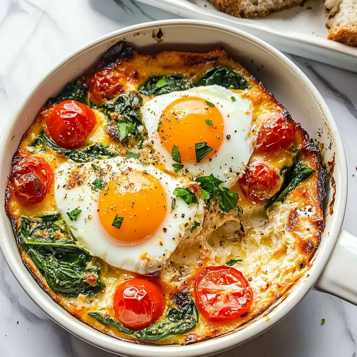 Crostini with Olive Tapenade: The crunchy bread with a savory tapenade adds a delightful burst of flavor, making every bite an exciting treat. It’s perfect for scooping up those delightful baked eggs!