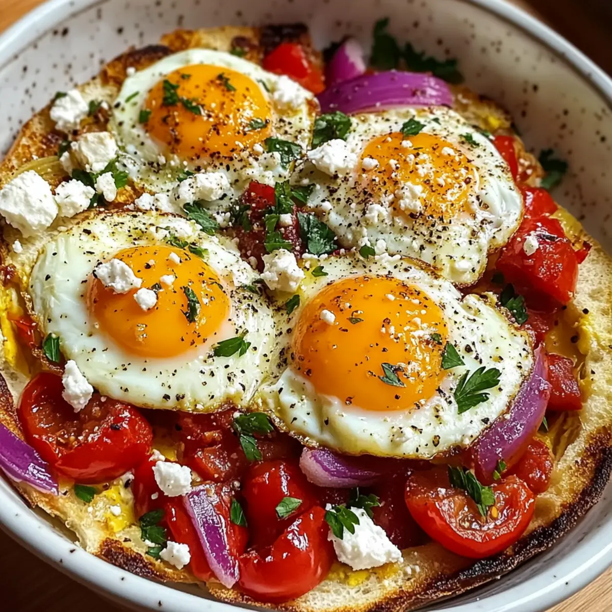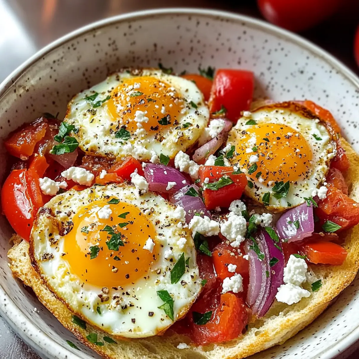 Flavorful Twist: The combination of creamy feta, fresh vegetables, and runny eggs creates layers of rich flavors that will tantalize your taste buds.