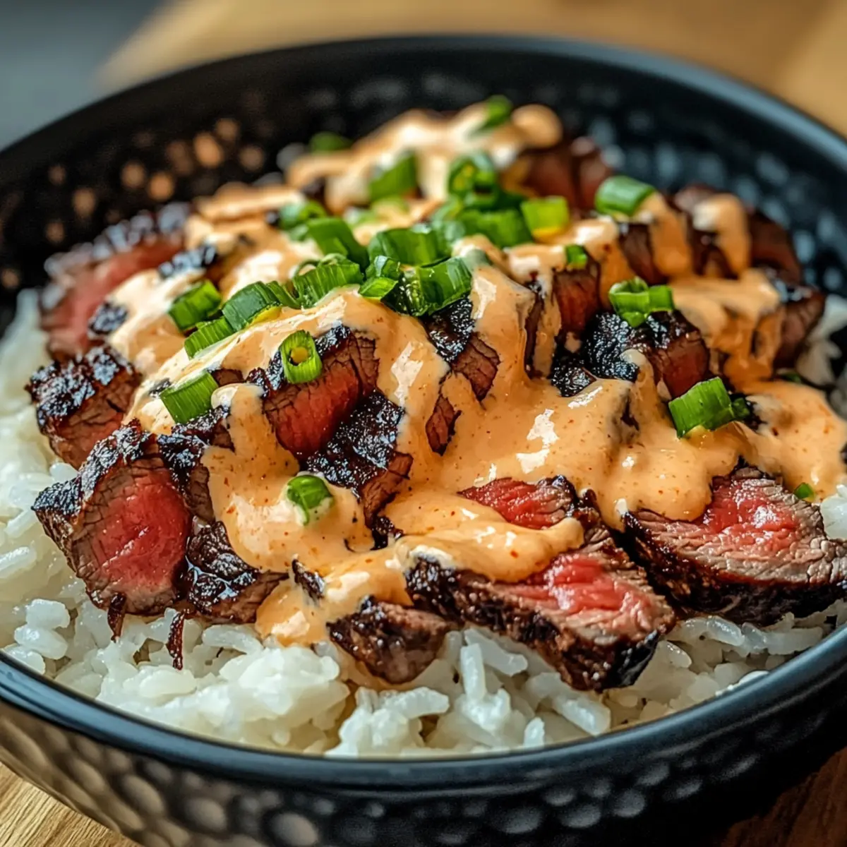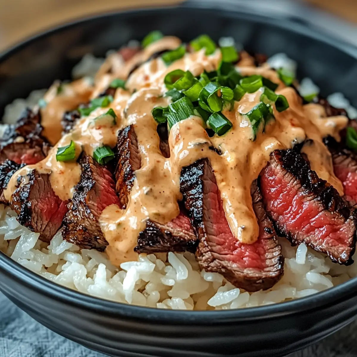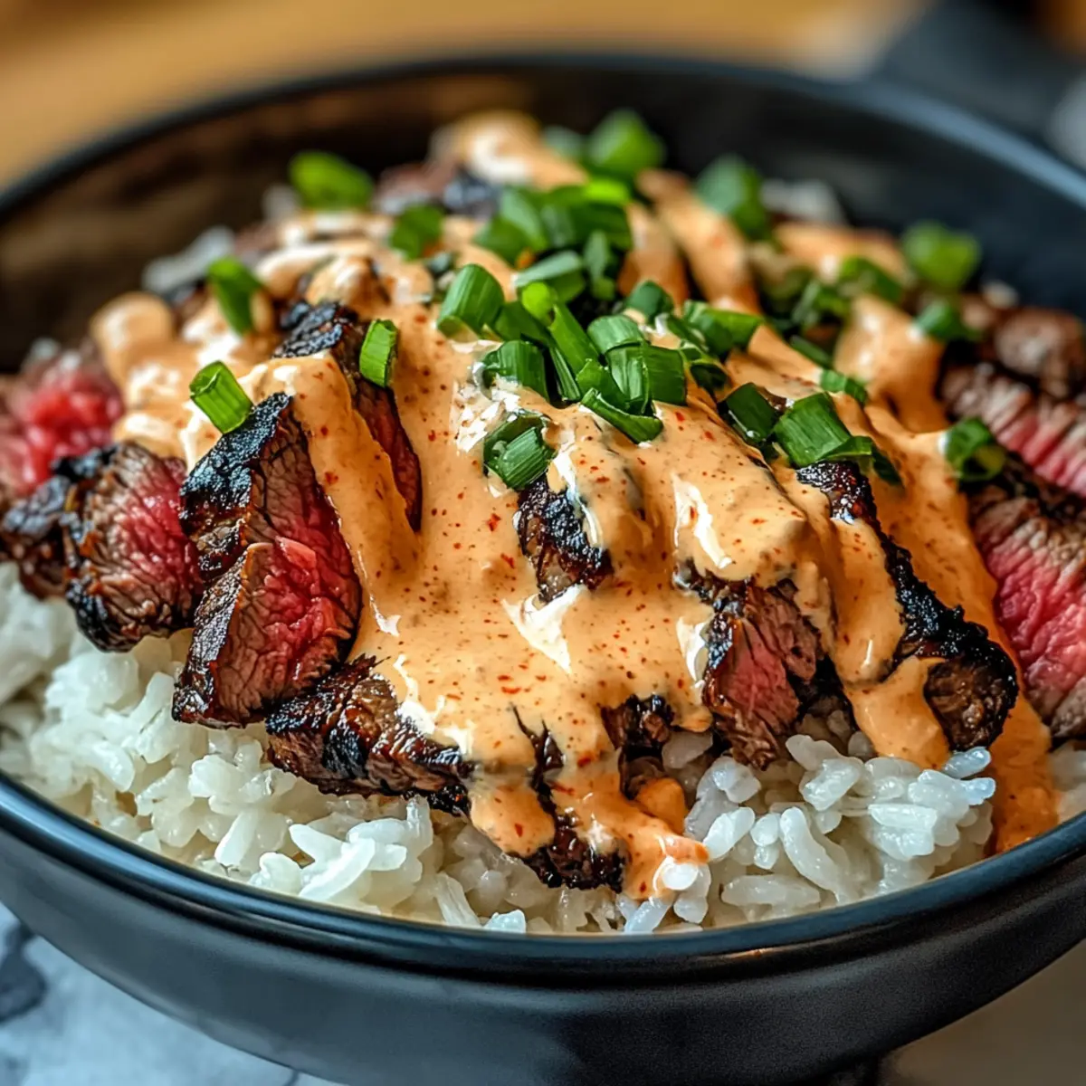 - Assemble the Bowls: Place rice in bowls, slice steak against the grain on top, drizzle with sauce, and garnish with green onions.