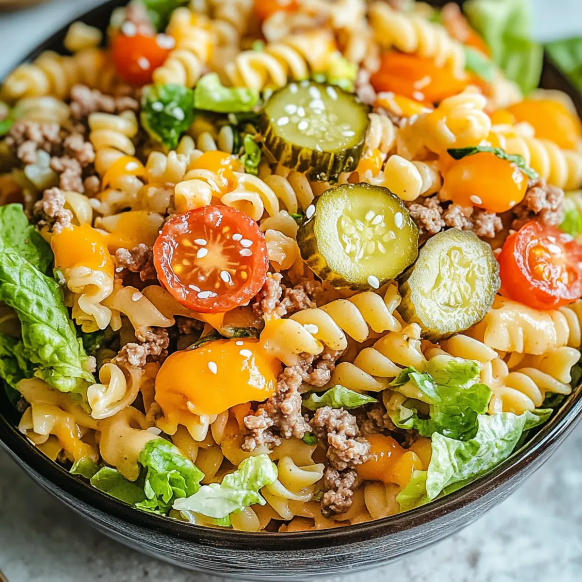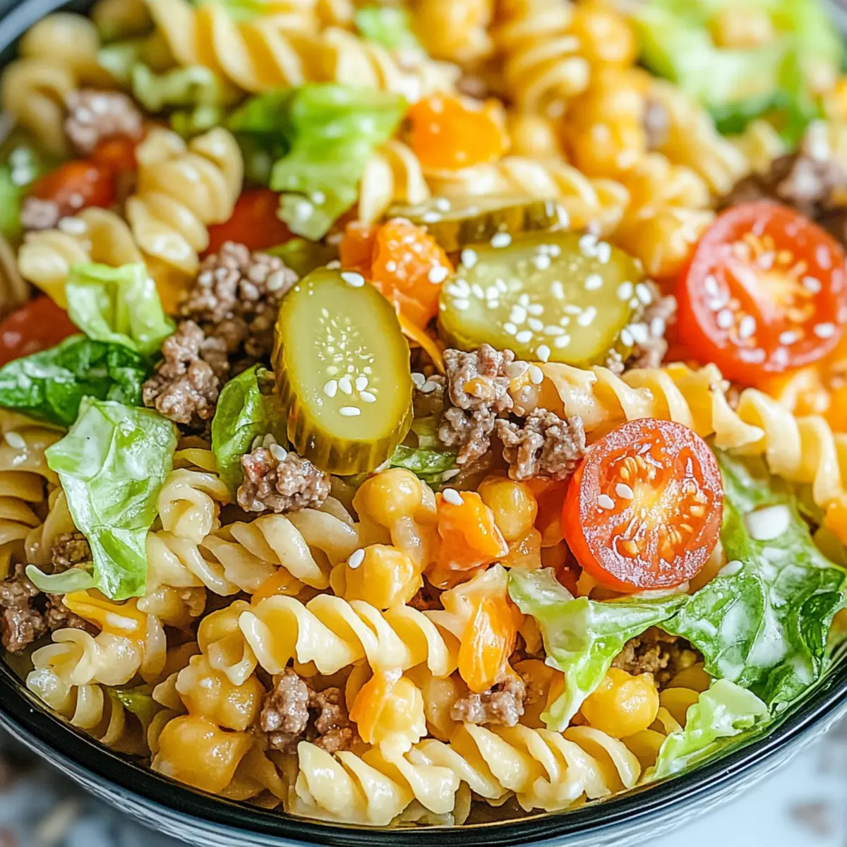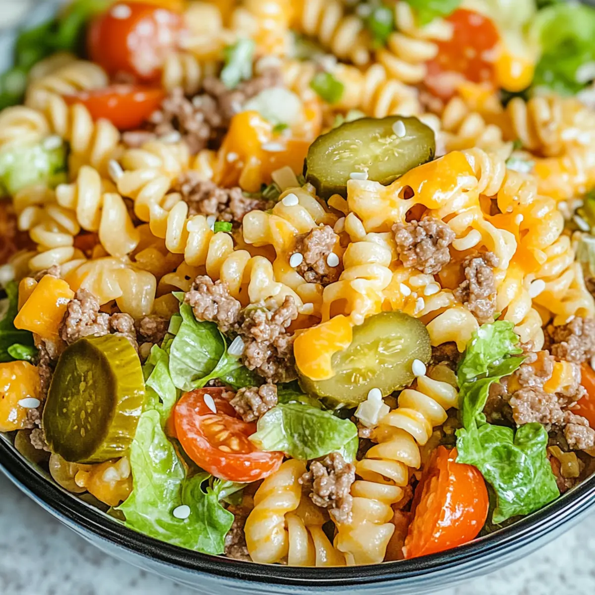 Flavor Fusion: Chill the pasta salad for at least one hour before serving to allow the flavors to meld beautifully, enhancing the overall taste of your Big Mac Pasta Salad.