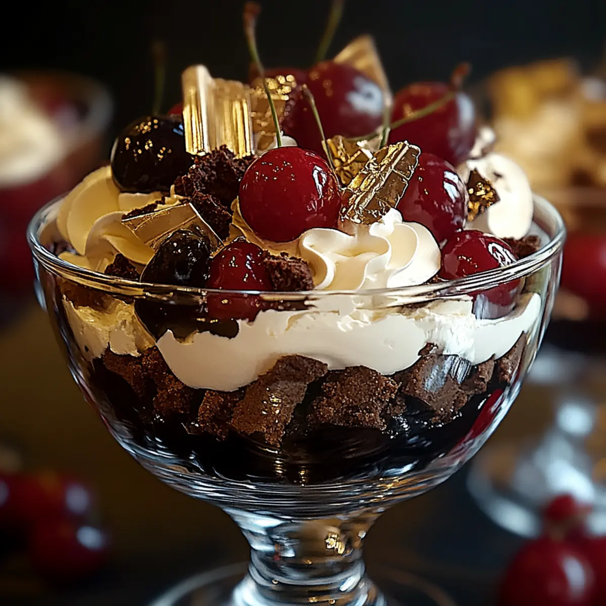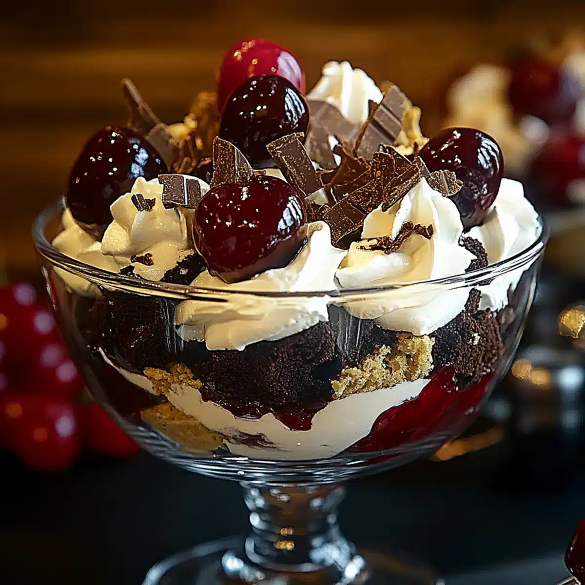 Decadent, Layered Indulgence: This Black Forest Trifle offers a stunning presentation that will wow your guests at any holiday gathering.