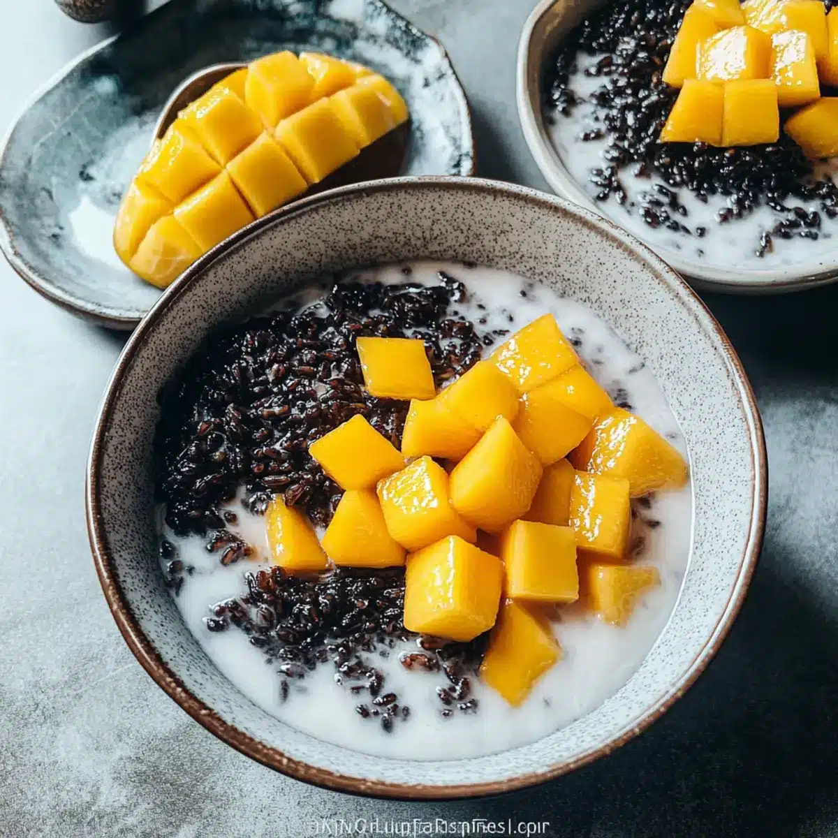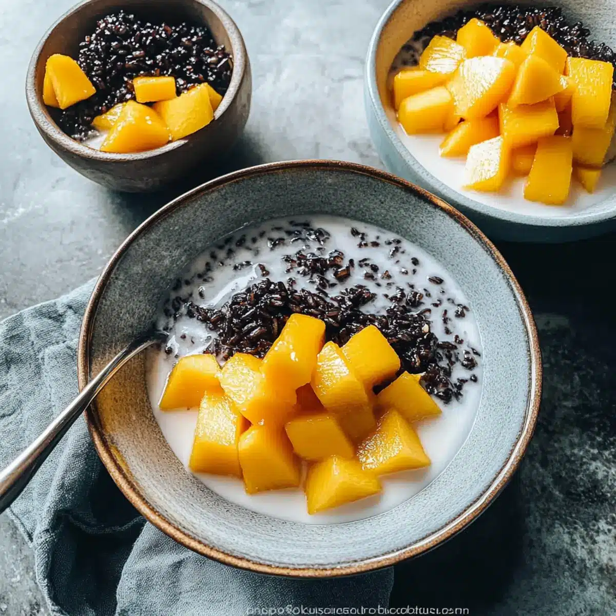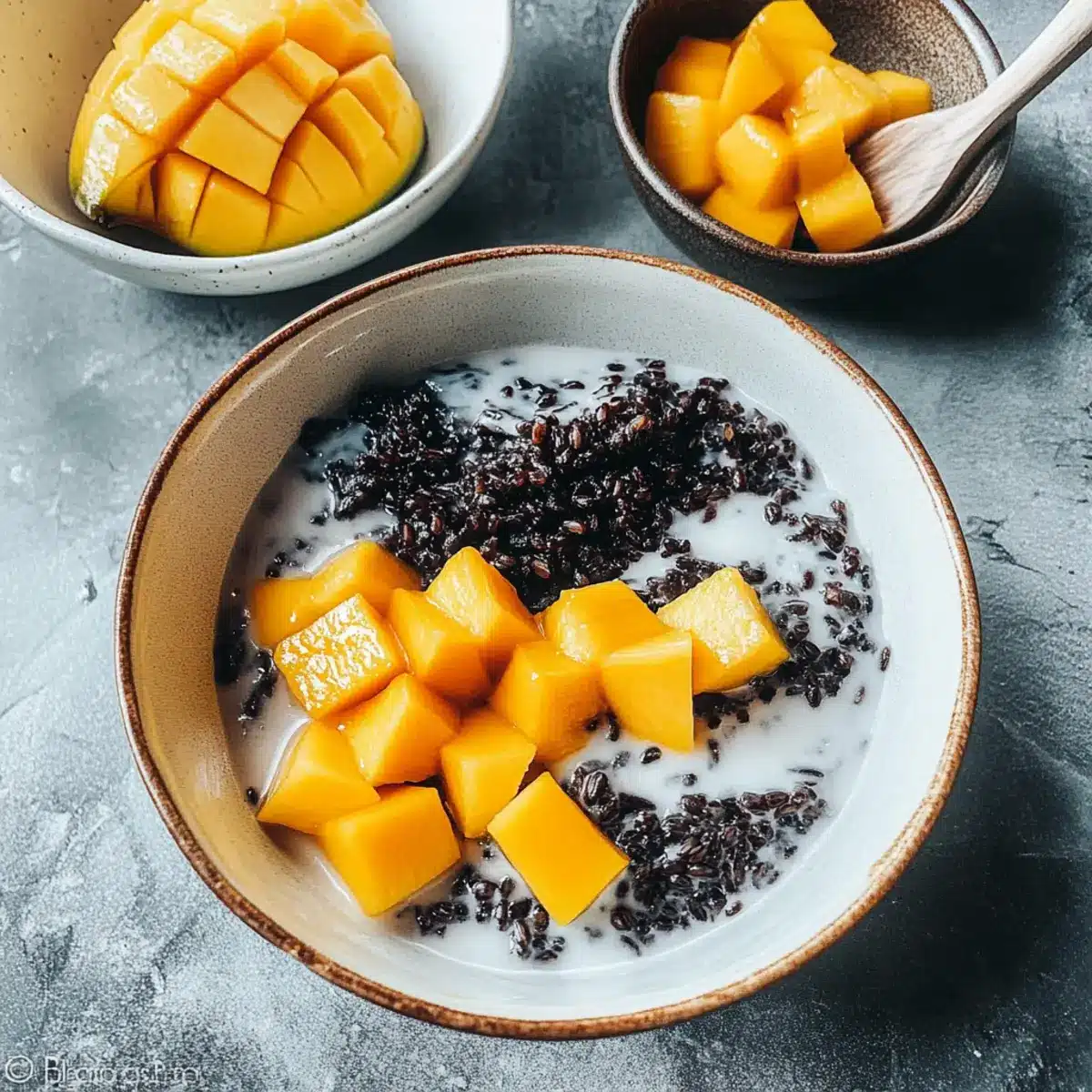 Creamy Black Rice Pudding with Coconut Milk and Mango Bliss