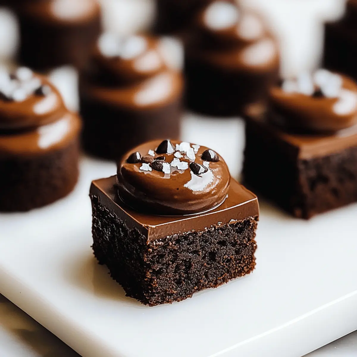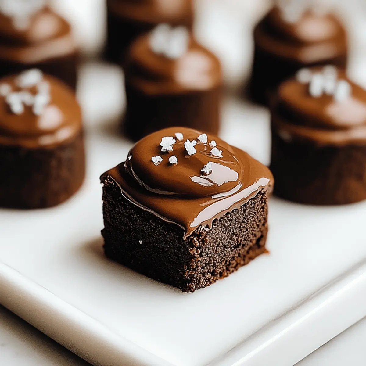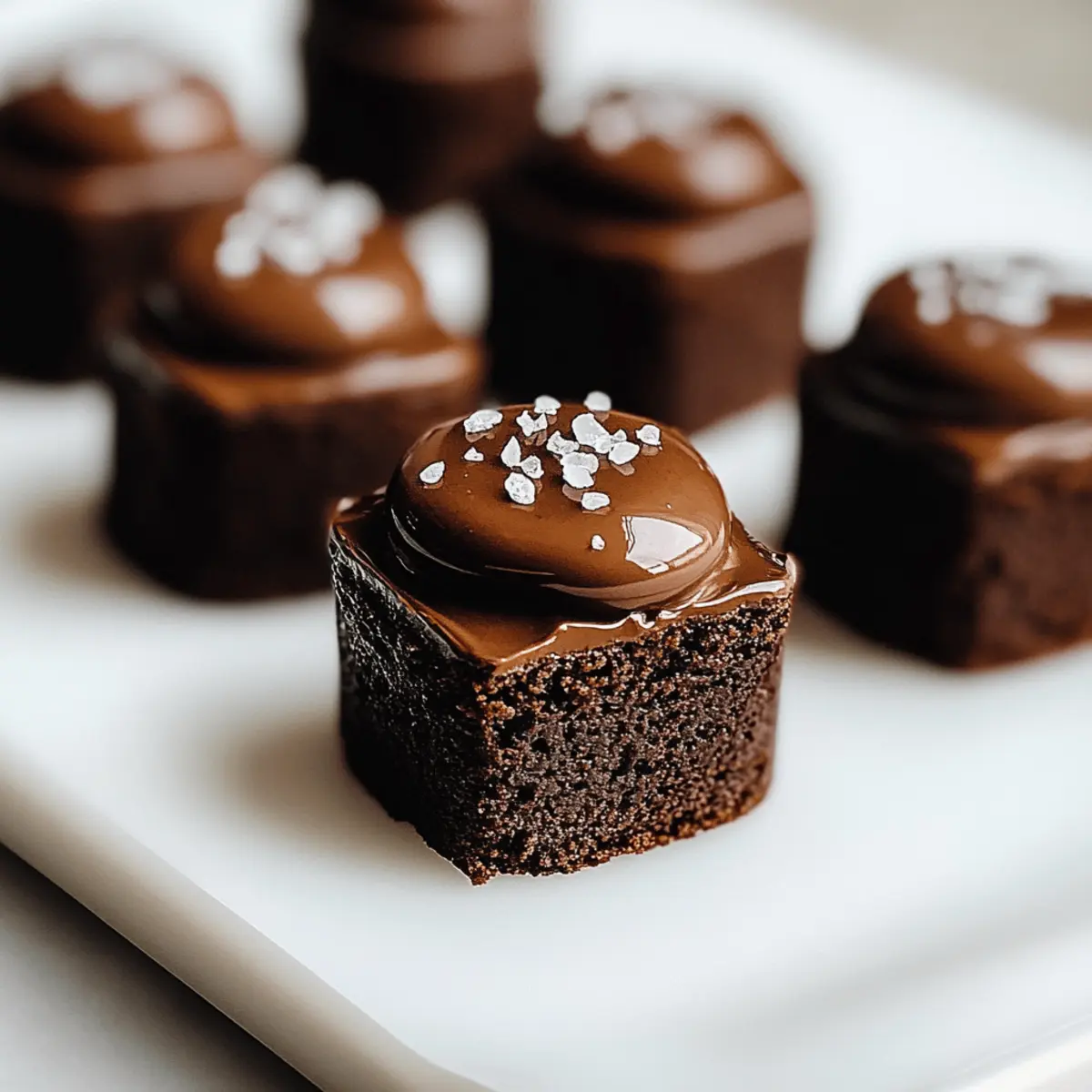 While the ganache is still soft, sprinkle a pinch of fleur de sel on top of each brownie petit four. This delicate touch will enhance the flavors and add a sophisticated flair to your elegant treats. Allow the ganache to set at room temperature before serving, ensuring a beautiful presentation for your guests.