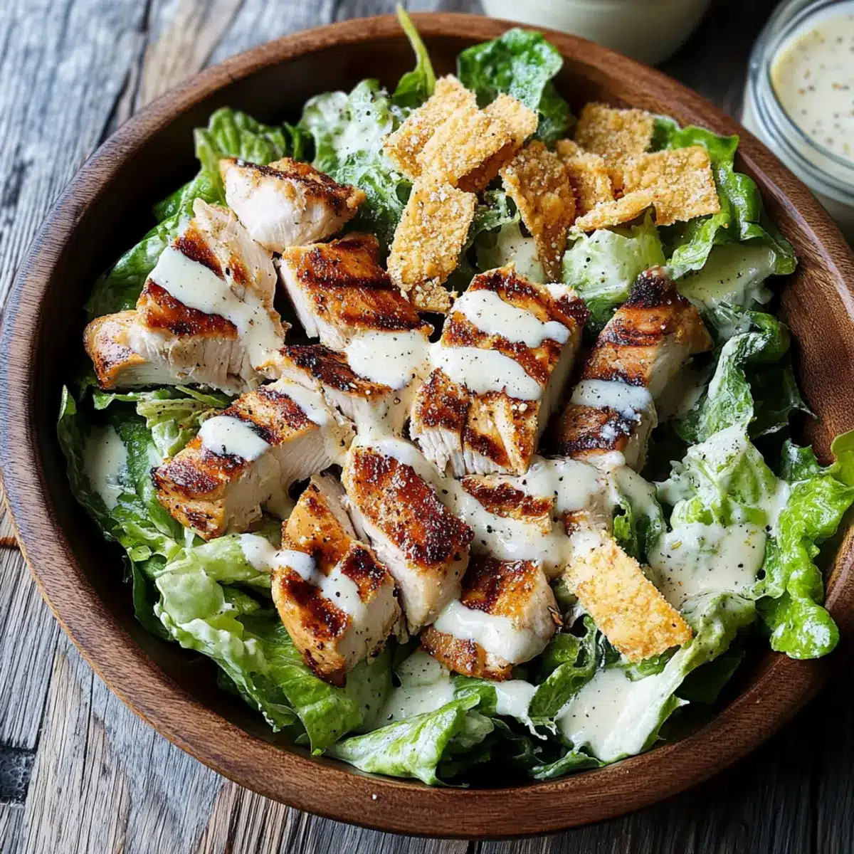 Perfectly Cooked Chicken: Use a meat thermometer to ensure that your grilled chicken reaches 165°F. Overcooking can lead to dry chicken, which will affect your Caesar salad’s overall texture.