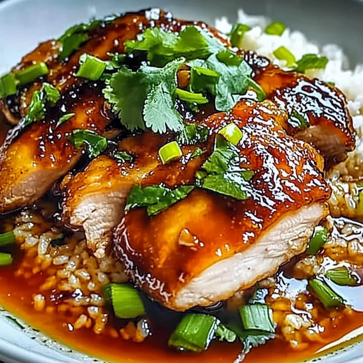 As the tantalizing aroma of ginger and garlic wafts through my kitchen, I can’t help but feel transported to a cozy evening in a bustling Asian market. Today, I’m sharing my beloved recipe for Caramelised Soy Chicken in Garlic Ginger Broth with Rice—a dish that promises to wrap you in warmth and comfort. This one-pot wonder is not only a hearty family meal but also boasts quick prep, making it a perfect solution for those evenings when everyone craves something nourishing yet satisfying. Featuring crispy-skinned chicken thighs sitting atop fluffy jasmine rice, this dish envelops your senses in richly layered flavors. Are you ready to create a culinary masterpiece that will leave your taste buds yearning for more?