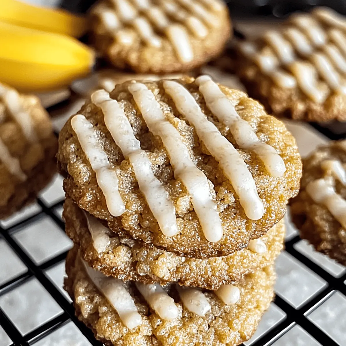 Soft Banana Bread Cookies with Cream Cheese Drizzle Delight