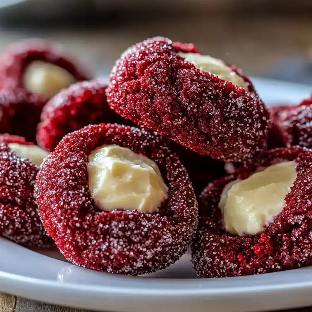 Soft and Chewy Red Velvet Thumbprint Cookies with Cream Cheese