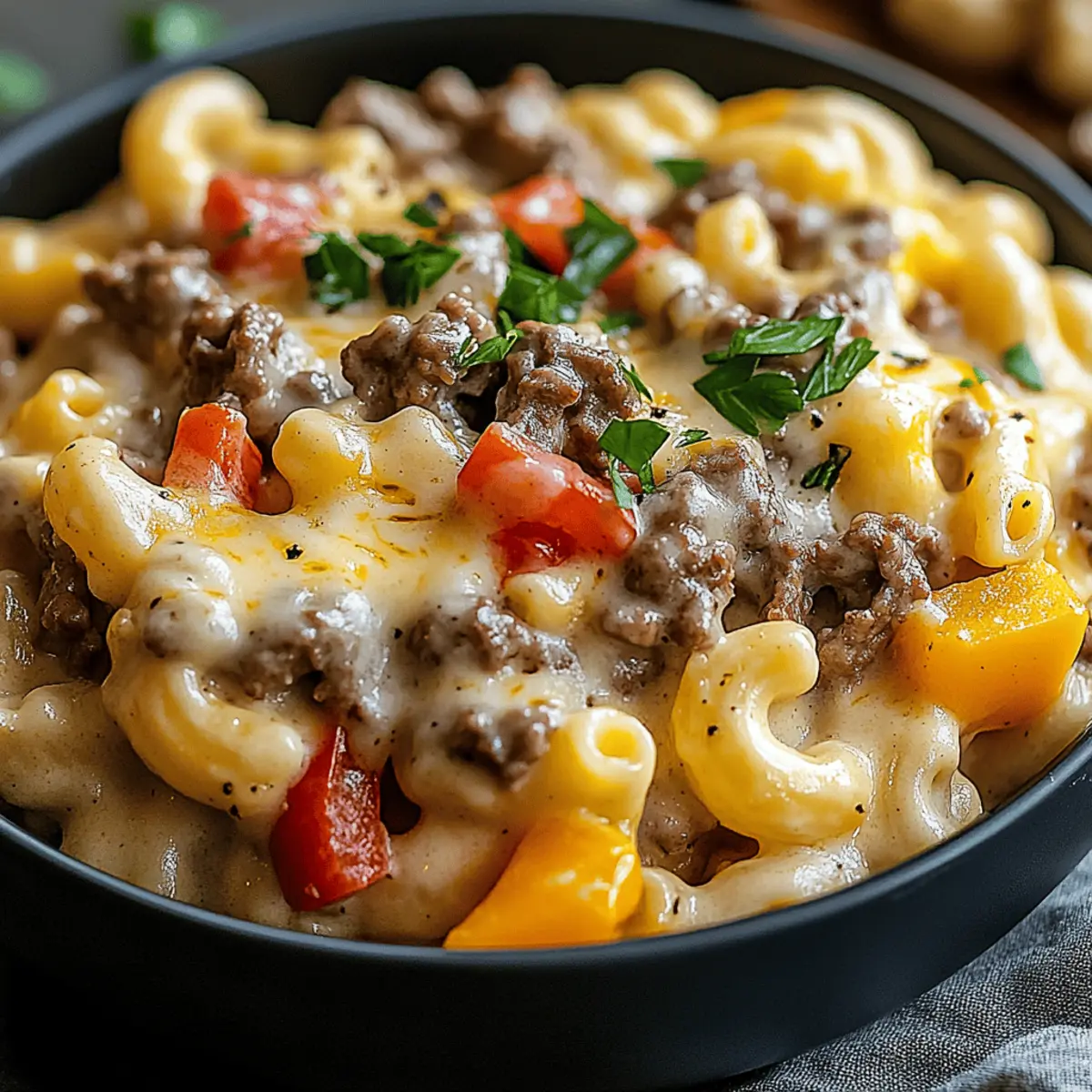 High-Protein Creamy Philly Cheesesteak Mac & Cheese Bliss