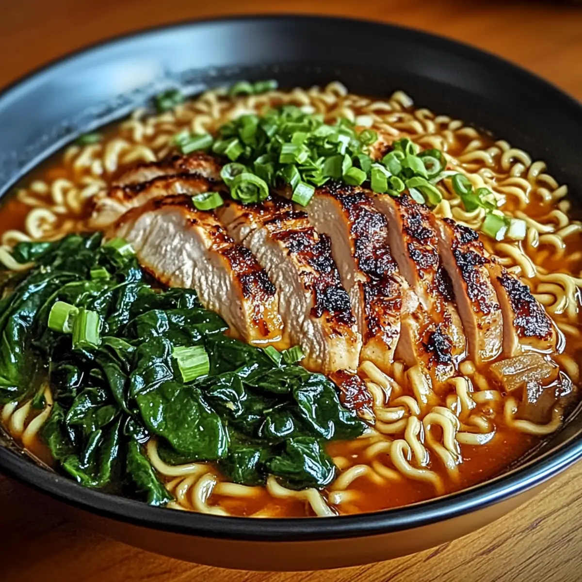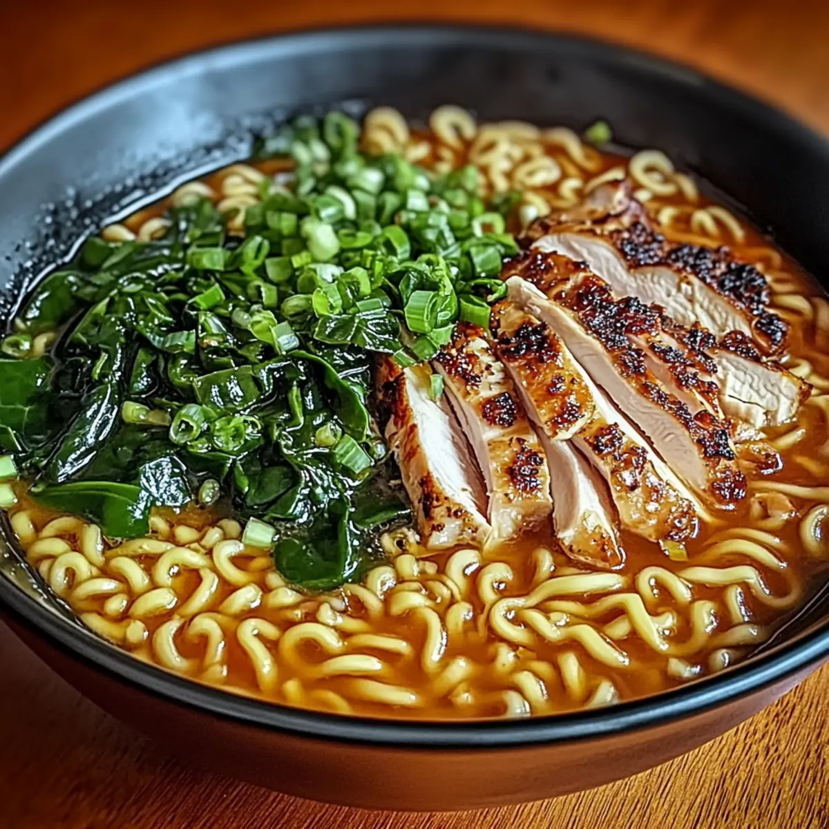 Finally, return the sliced chicken to the pot to warm through. Ladle the piping-hot Chicken Ramen Noodles into bowls and garnish generously with sliced green onions, soft-boiled eggs, and toasted sesame seeds if desired. The beautiful presentation and rich aroma will elevate your cozy dining experience!