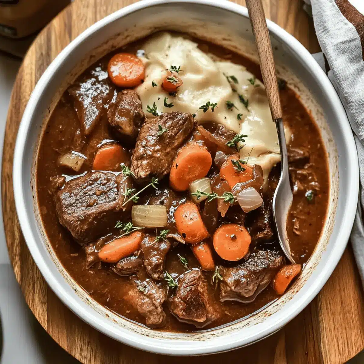 Herb Infusion: Toss in a sprig of rosemary alongside the thyme for a refreshing twist that complements the rich stew beautifully.