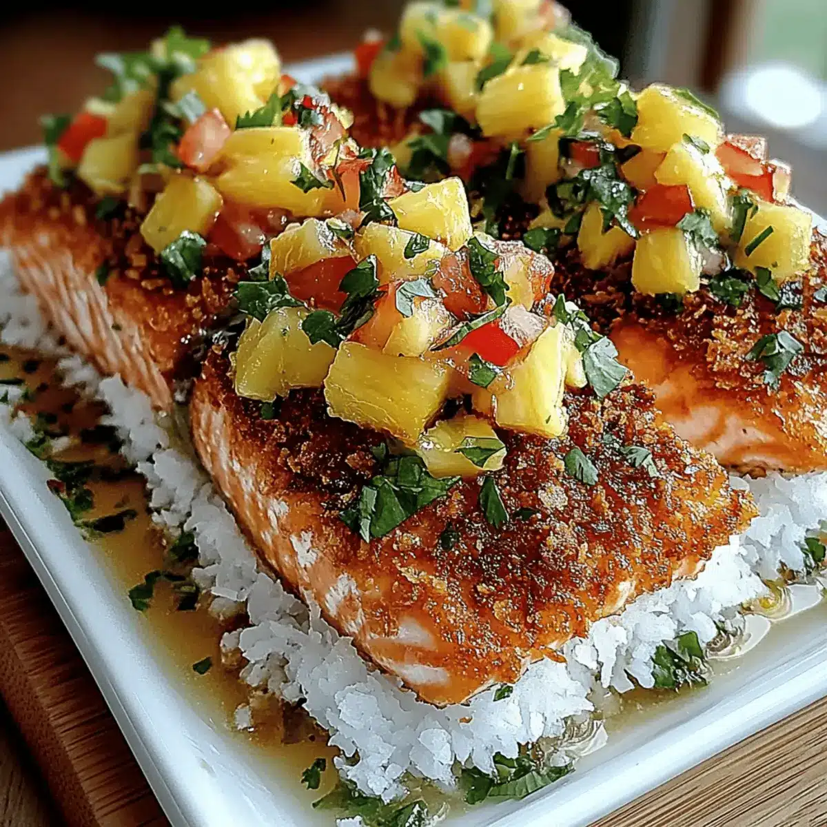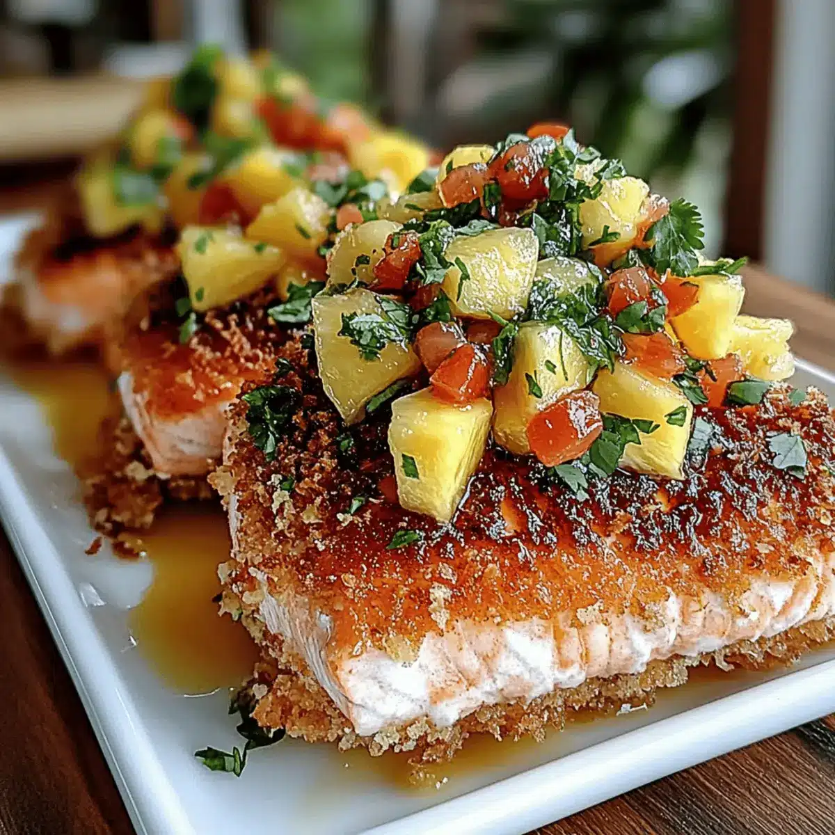 Coconut Crusted Salmon with Pineapple Salsa Delight