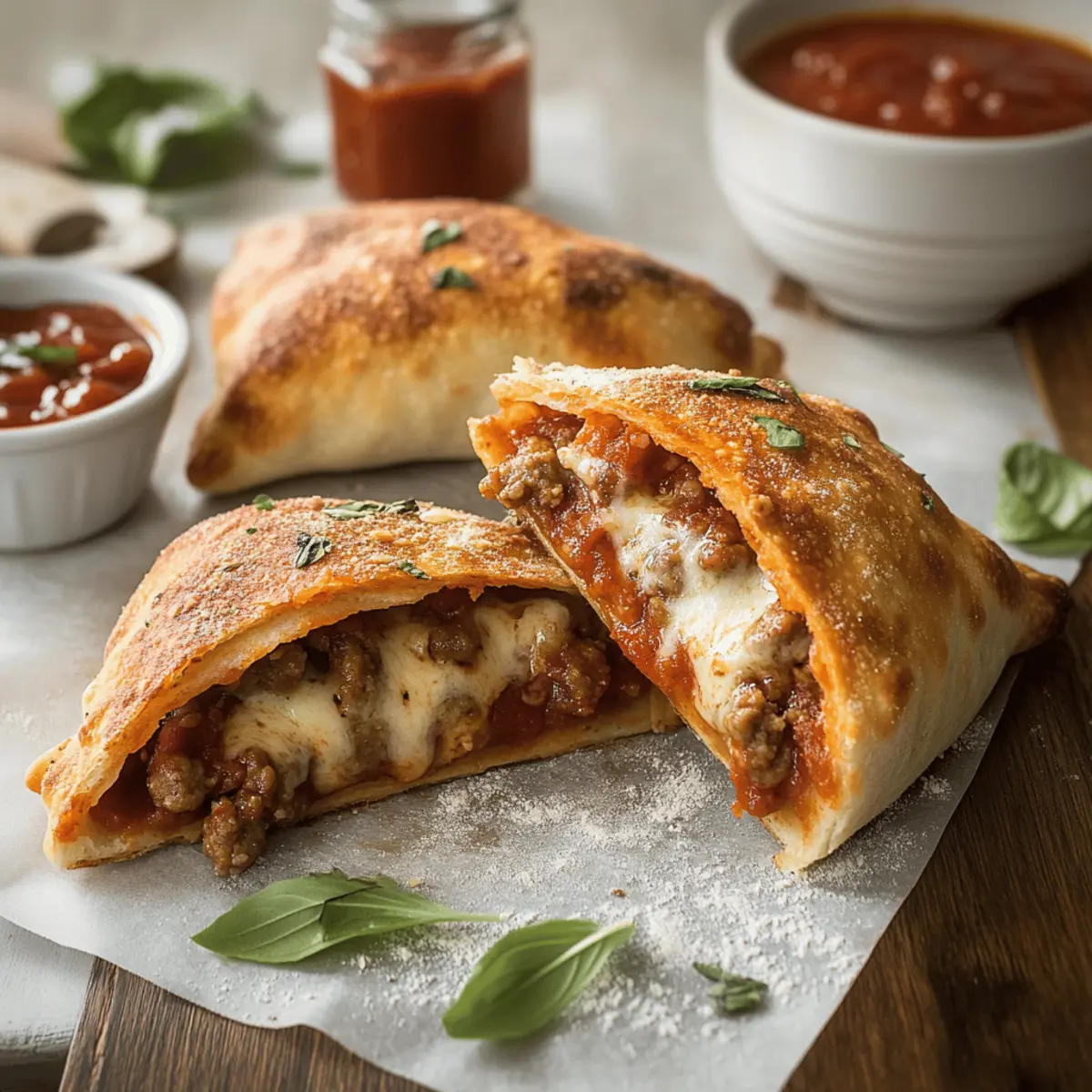 • Shredded Mozzarella (for filling) – Enhances that cheesy, delicious experience inside the calzone.