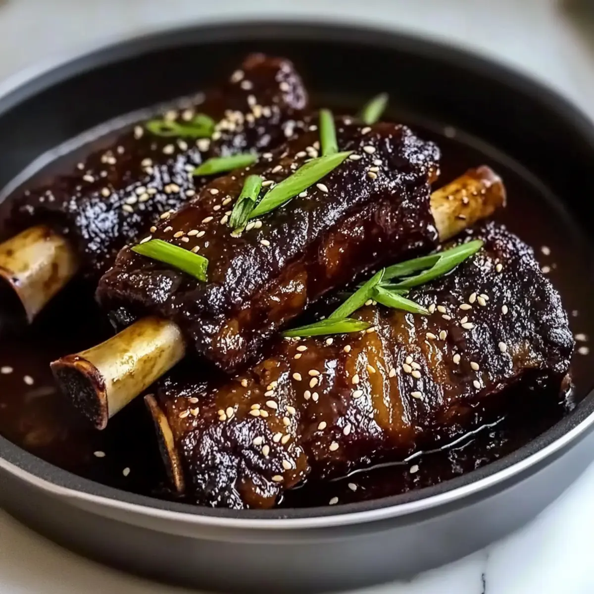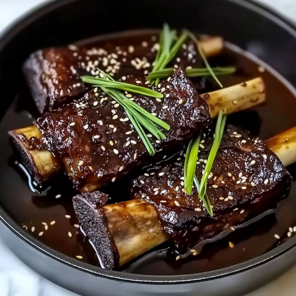- Serve the ribs garnished with green onions and sesame seeds, and enjoy!