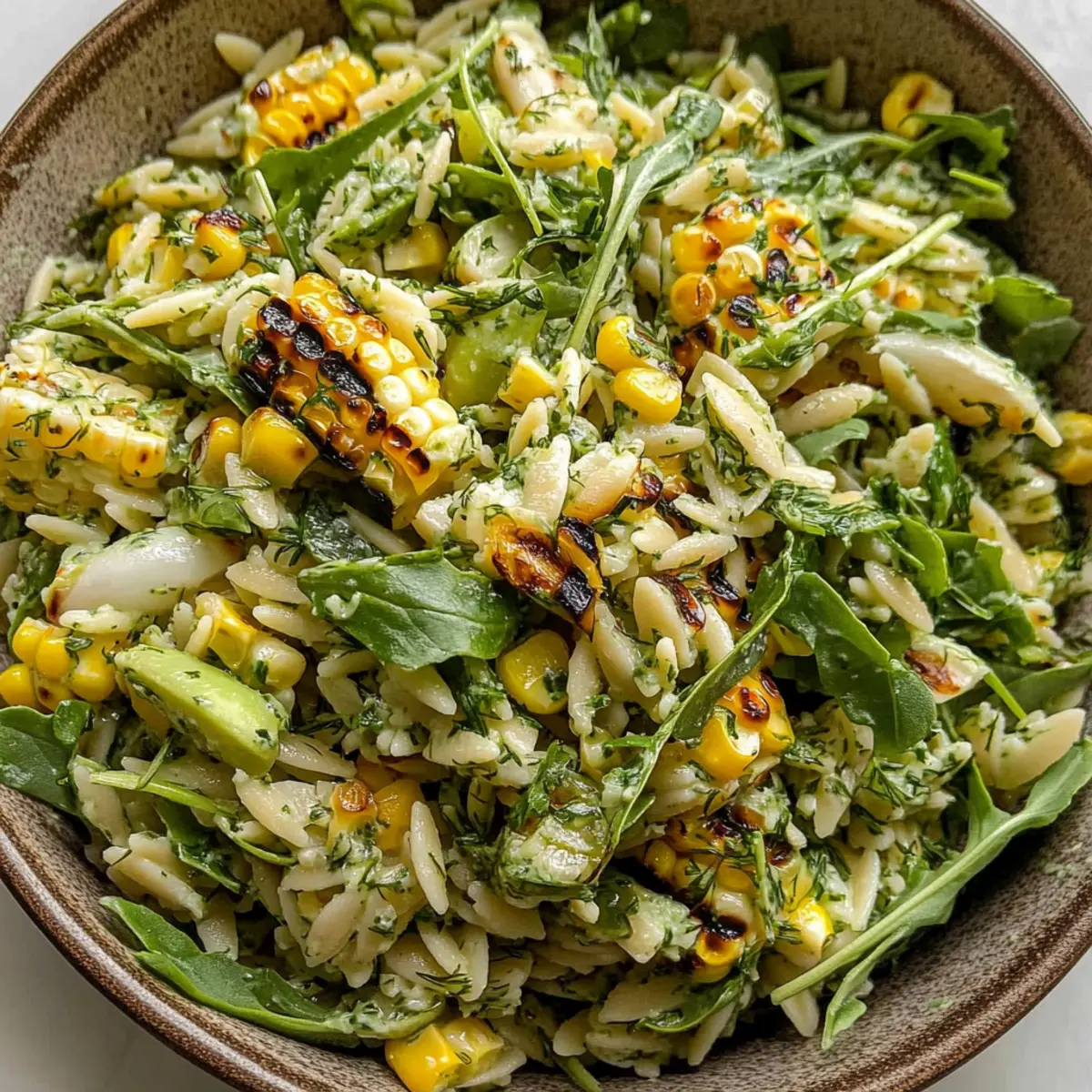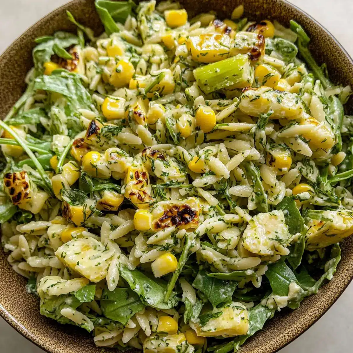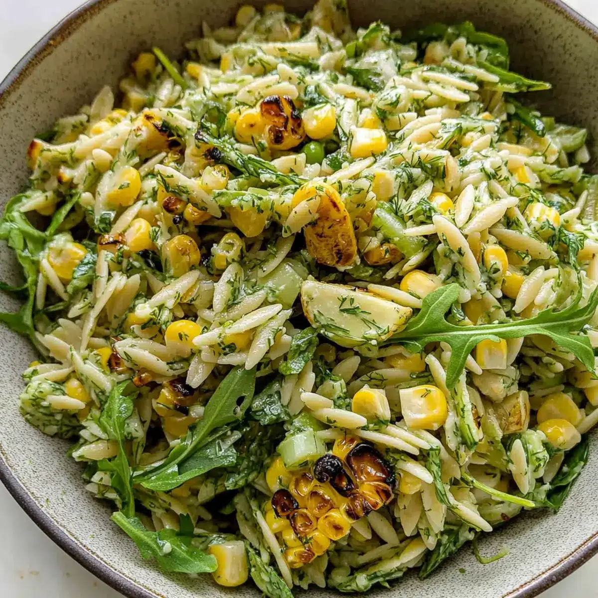 Grilled Corn Orzo Salad with Scallion Dill Dressing Delight