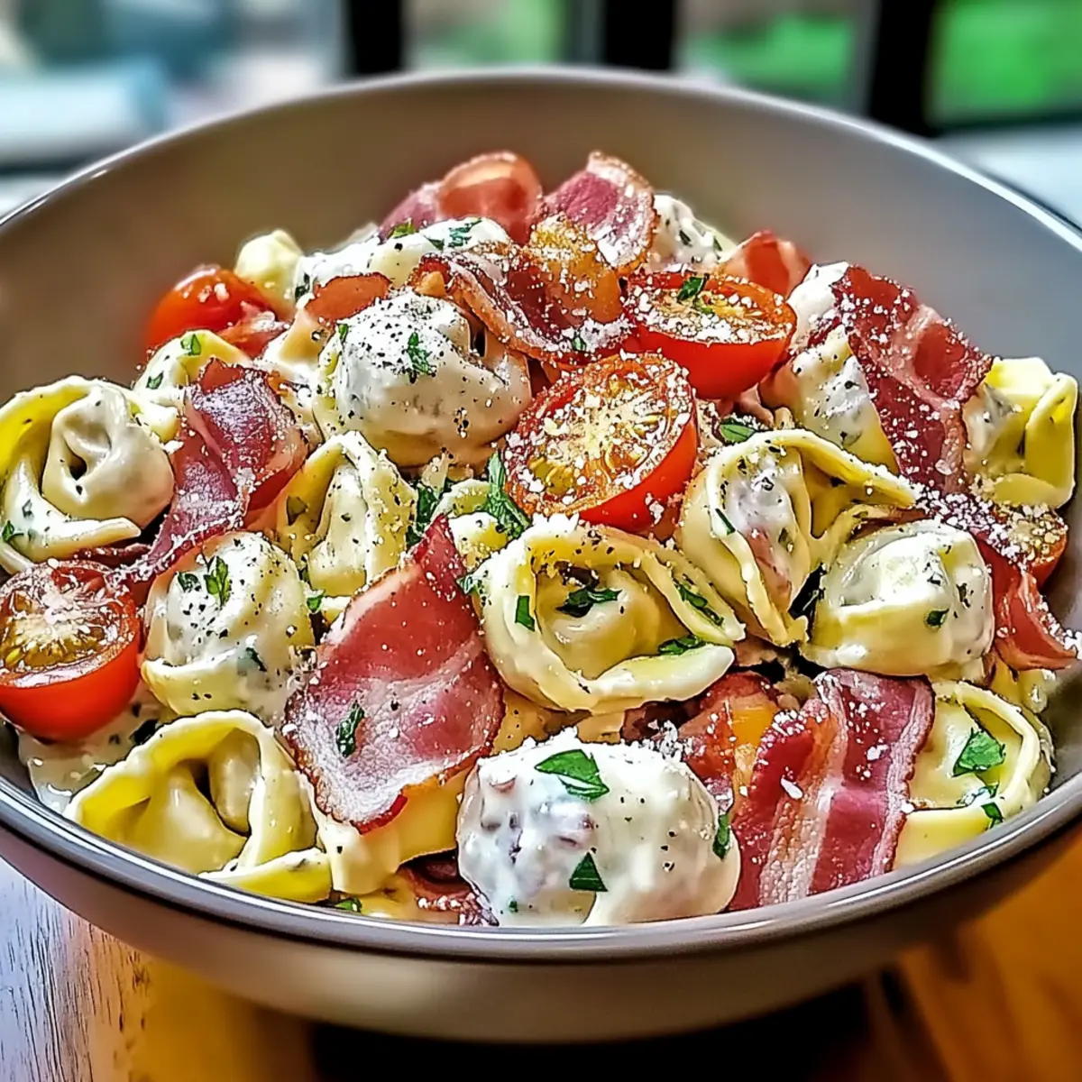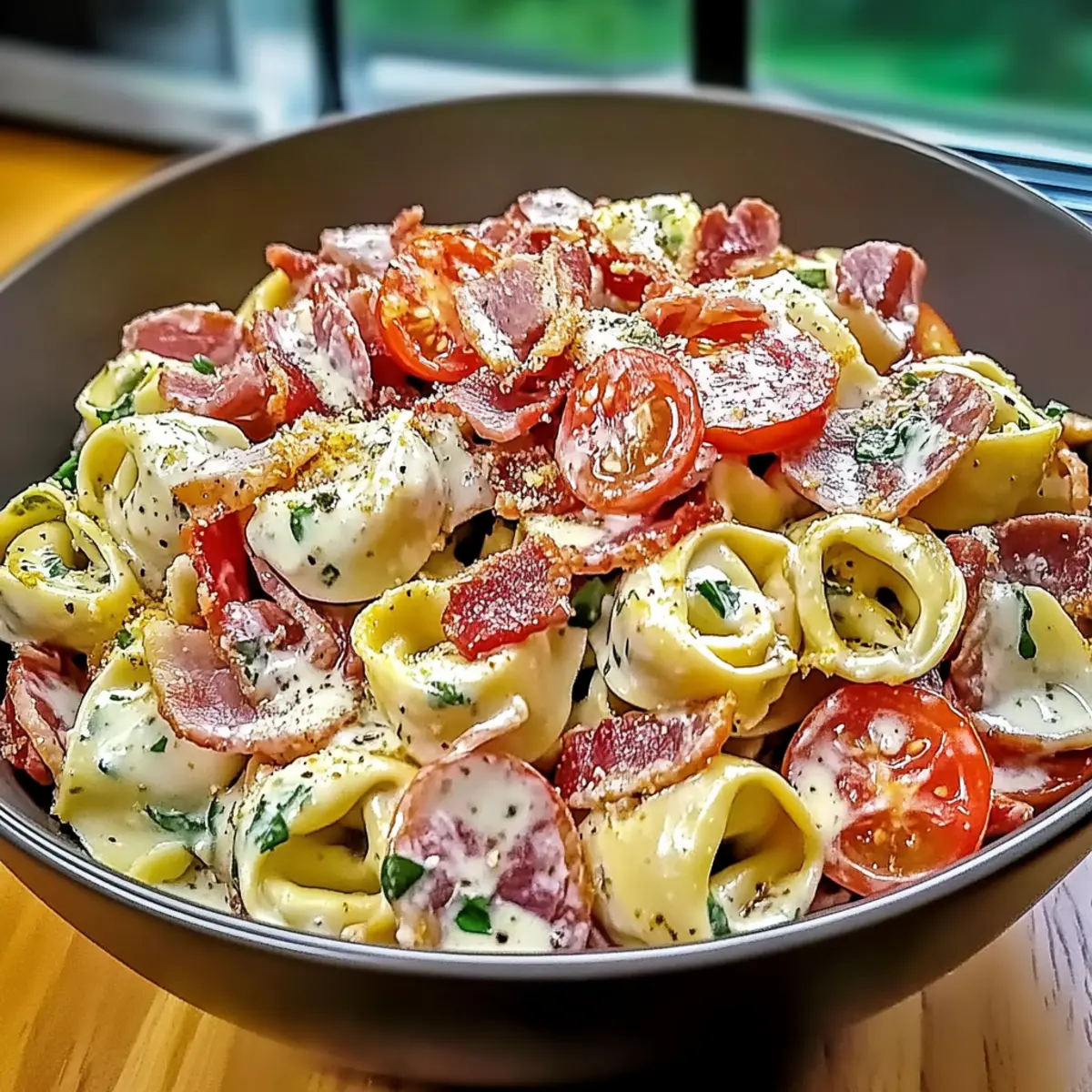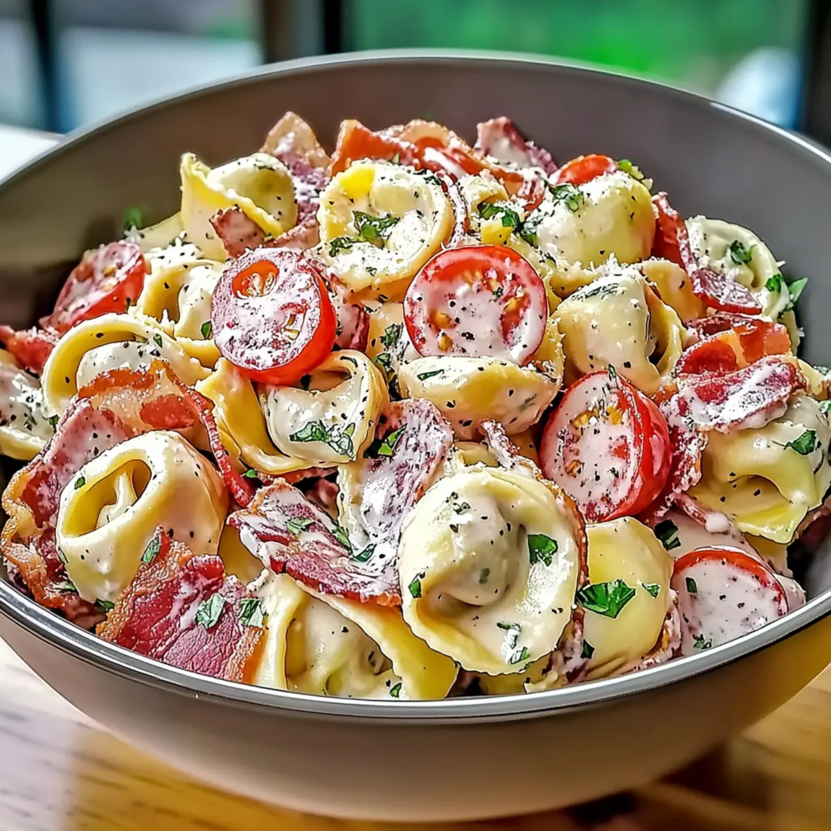 Make-Ahead: Prepare components like bacon and tortellini up to 24 hours beforehand. Combine and chill the salad to enhance flavors before serving.