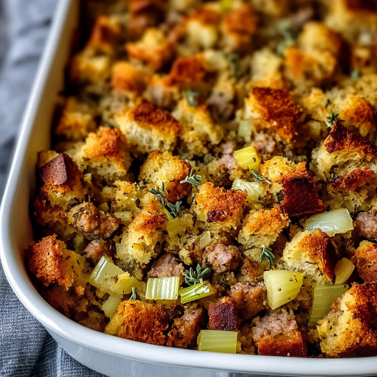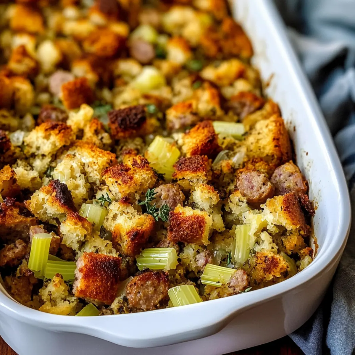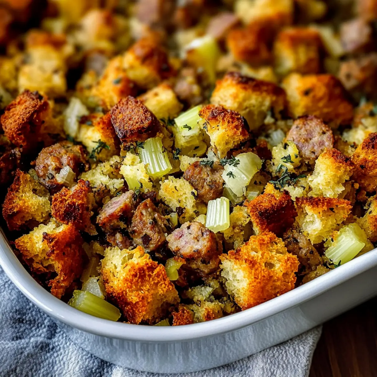 Blend of Sausages: Experiment with sausage varieties like sweet Italian or spicy chorizo. This personal touch can drastically change the flavor profile of your stuffing!