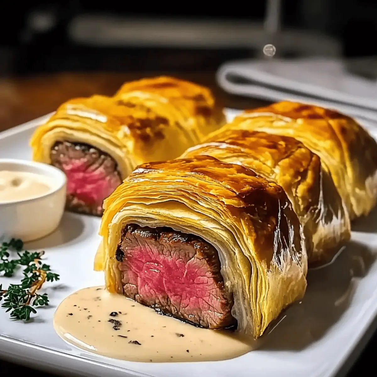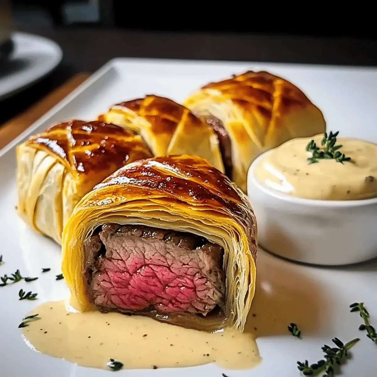 Mini Beef Wellington with Creamy Horseradish Sauce Delight