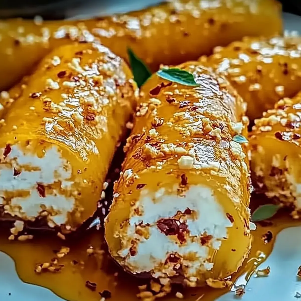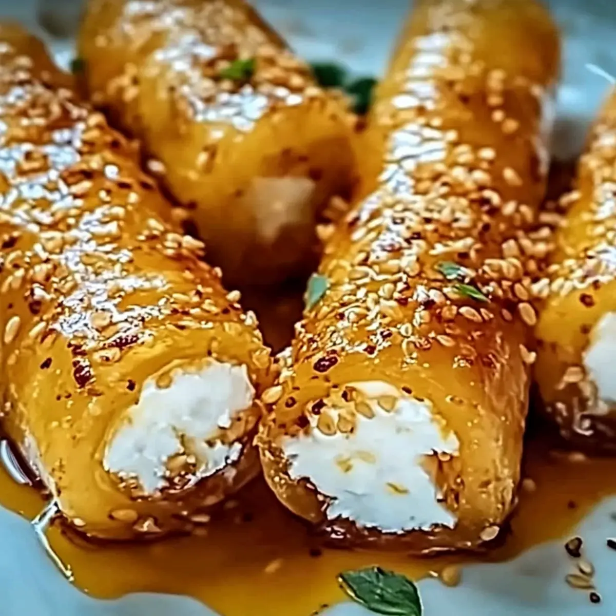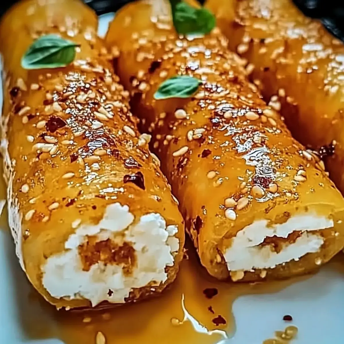 Crispy Oven Fried Feta Rolls with Chili Honey Delight