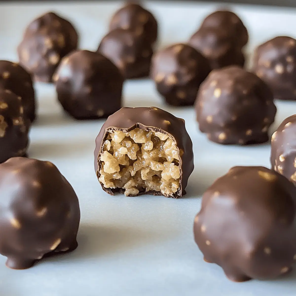 Once all balls are formed, place the baking sheet in the refrigerator for at least 1 hour, or for a quicker set, in the freezer for about 20 minutes. This step is essential for firming up your Peanut Butter Balls with Rice Krispies, making them easier to coat in chocolate later.