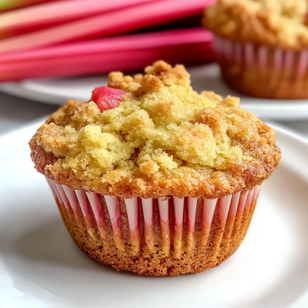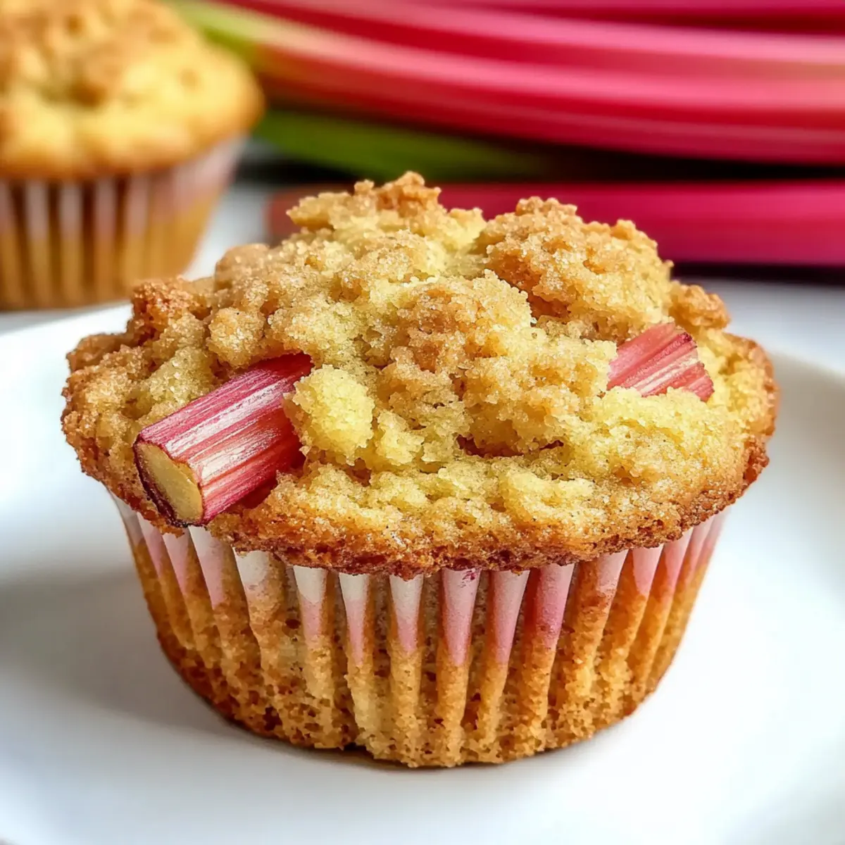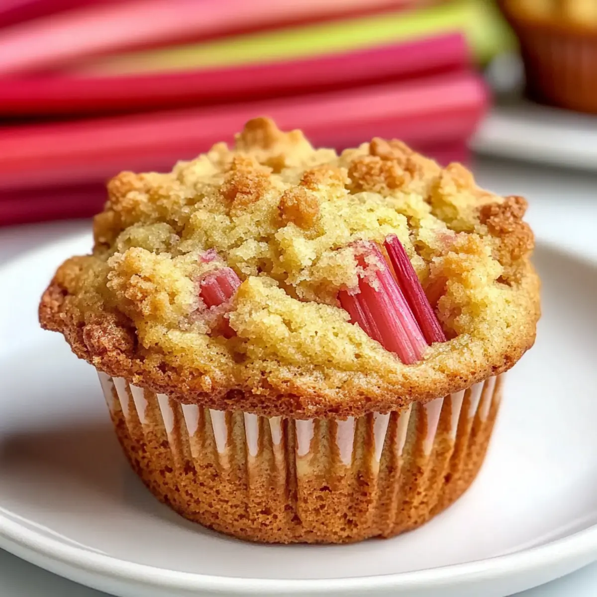 Irresistible freshness: Each muffin bursts with chunks of tangy rhubarb, celebrating the flavors of spring.