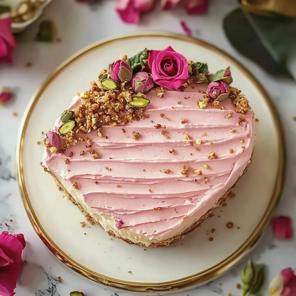 Cover the assembled No-Bake Rose Tiramisu tightly with plastic wrap and refrigerate for at least 6 hours or overnight to allow the flavors to meld and the dessert to set properly. Before serving, decorate the top with delicate rose buds and silvered pistachios for an eye-catching finish that elevates your beautiful creation.