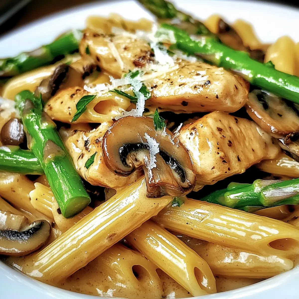 Savory Chicken Penne with Creamy Mushroom and Asparagus Bliss