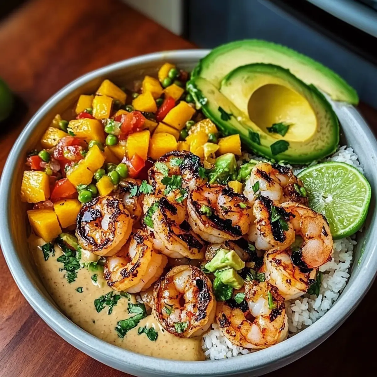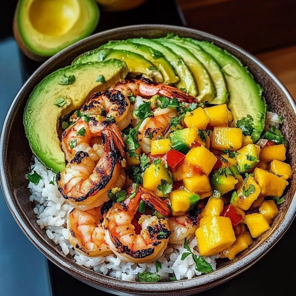 - Assemble Bowls: Layer rice, shrimp, avocado, and salsa in a bowl. Drizzle with lime-chili sauce. Serve immediately.