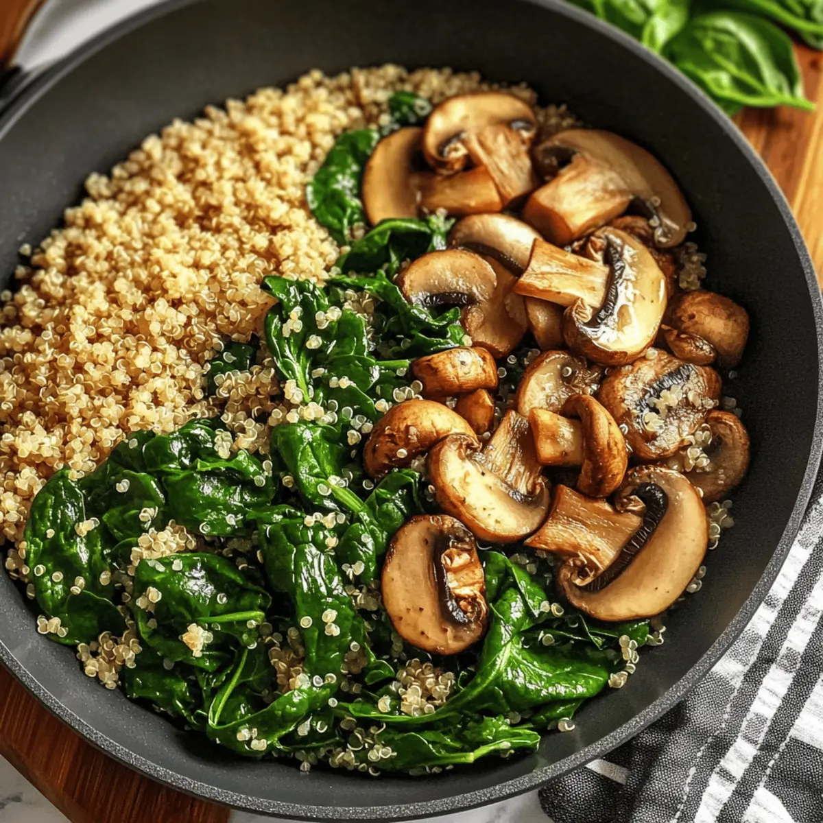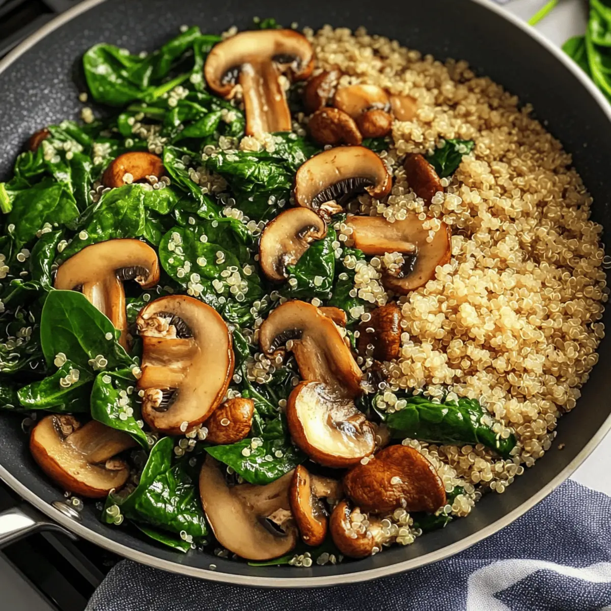 These easy Spinach Mushroom Quinoa Skillet ingredients make meal prep a breeze! You can prepare the quinoa and sauté the mushrooms, garlic, and onions up to 24 hours in advance. Simply store them separately in airtight containers in the refrigerator. When you’re ready to serve, reheat the quinoa and mushroom mixture together in a skillet over medium heat. Add the spinach for the last 2-3 minutes of cooking to keep its vibrant color and nutrients intact. This method not only saves time on busy weeknights but also ensures your Spinach Mushroom Quinoa Skillet is just as delicious when reheated!
