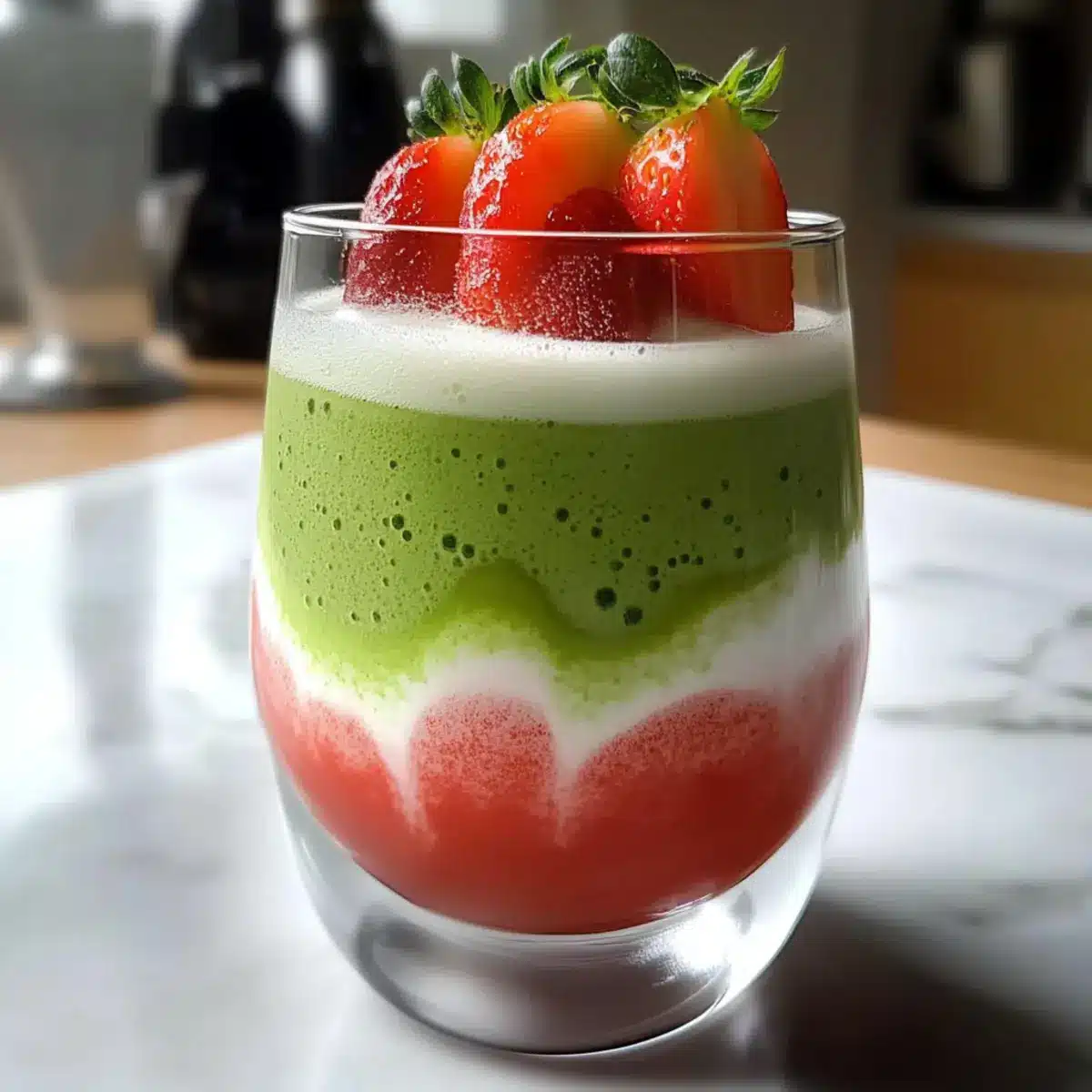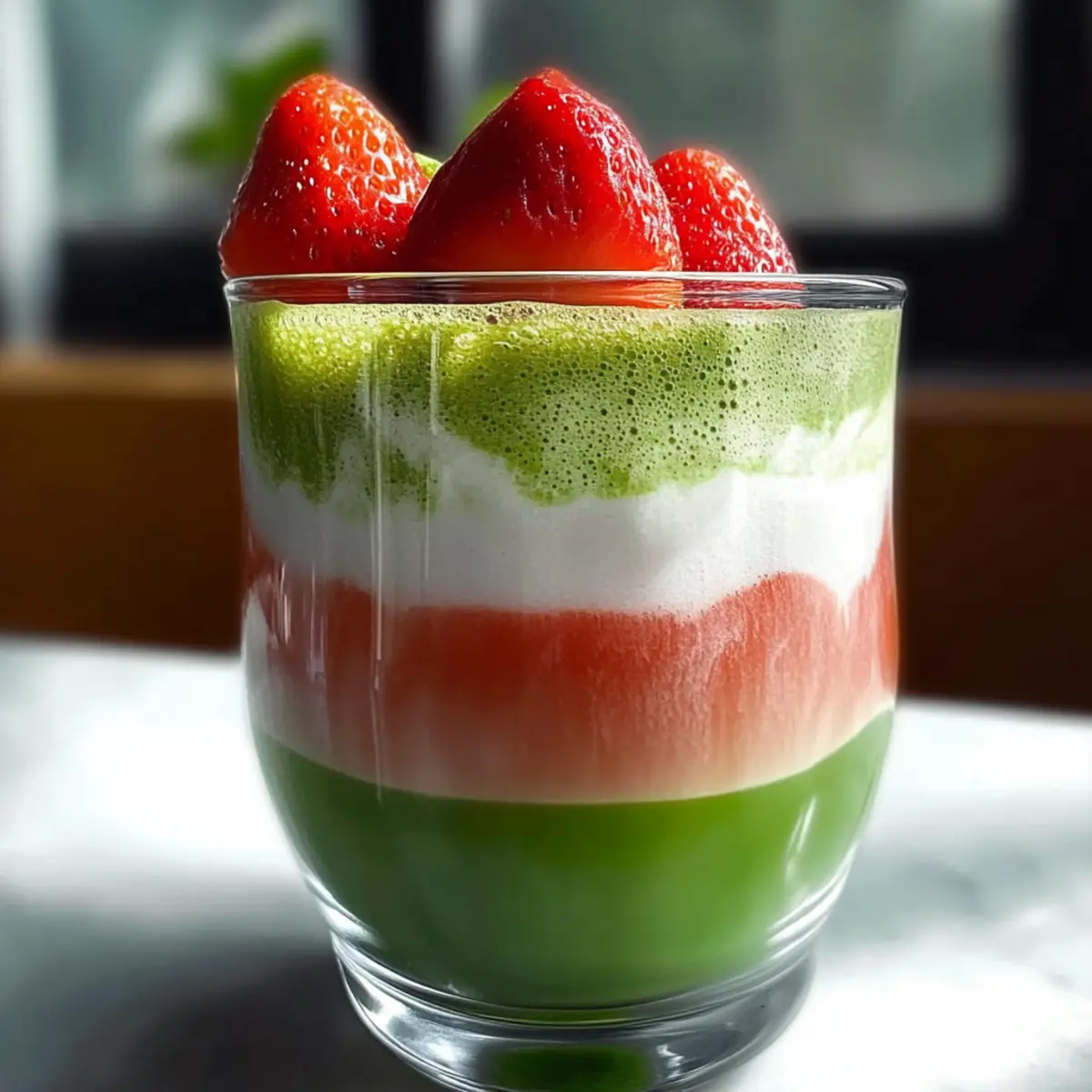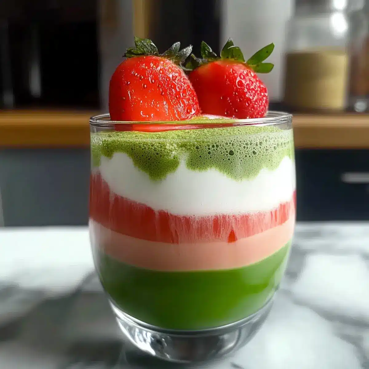 - Serve immediately, garnished with a strawberry slice or matcha sprinkle if desired.