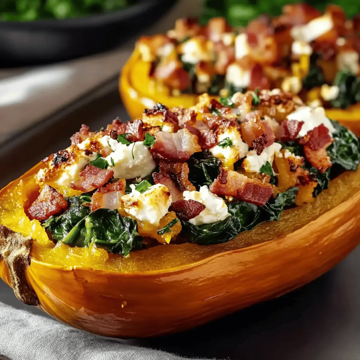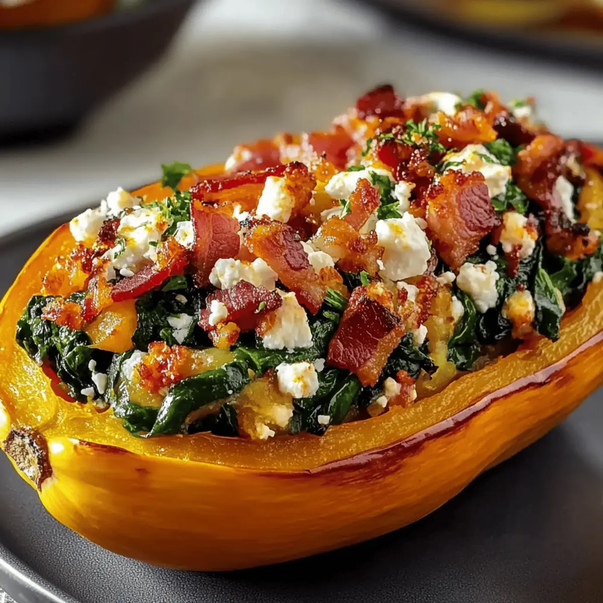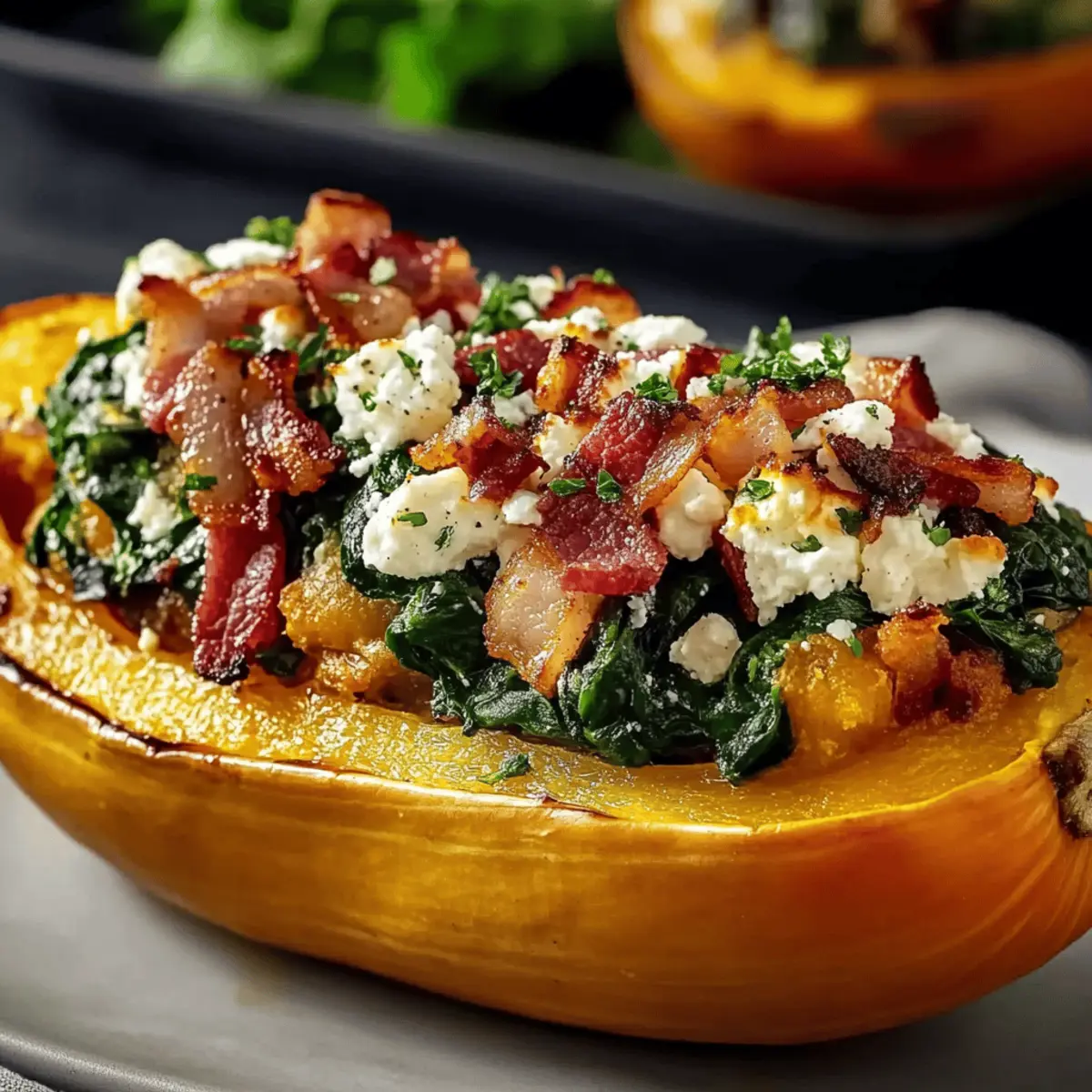 Savory Stuffed Butternut Squash w Feta Spinach Bacon Delight
