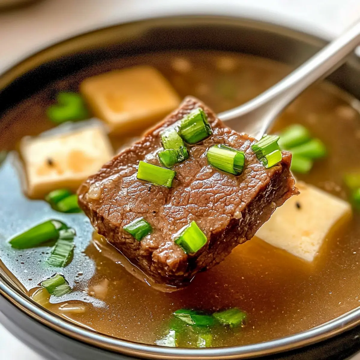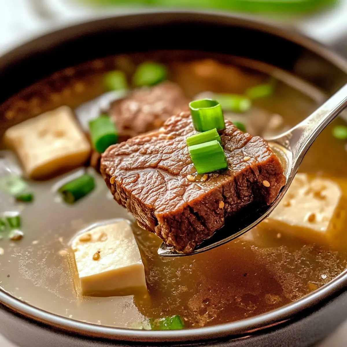 Ladle the soup into bowls, garnishing with sliced green onions and a sprinkle of black pepper for added flavor. Serve with a side of warm rice, letting the comforting aroma fill your home as you enjoy this hearty dish that is perfect for chilly nights.