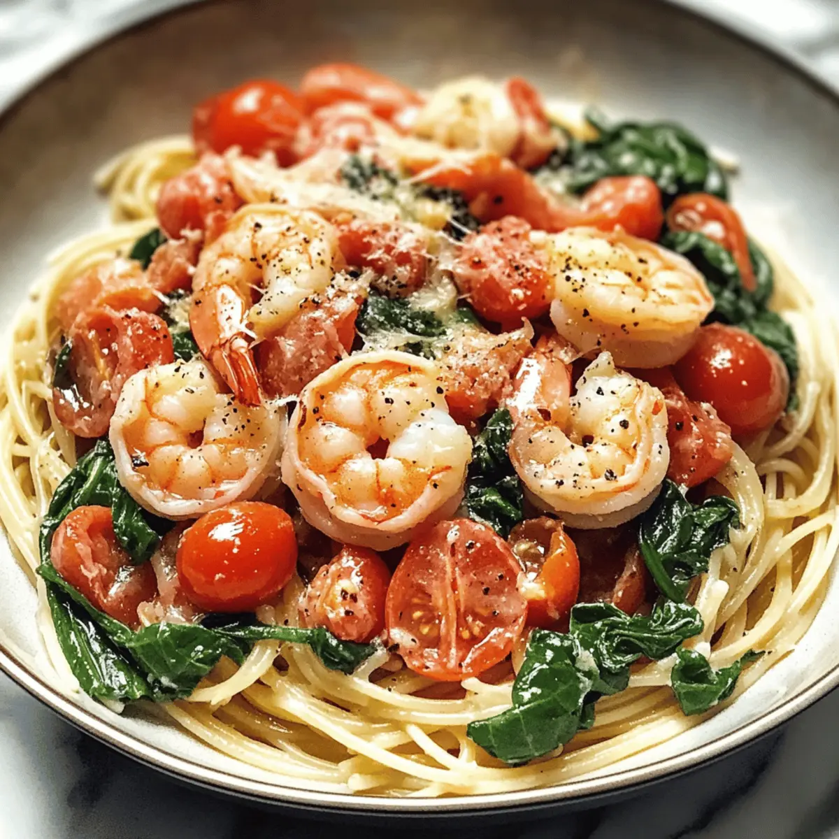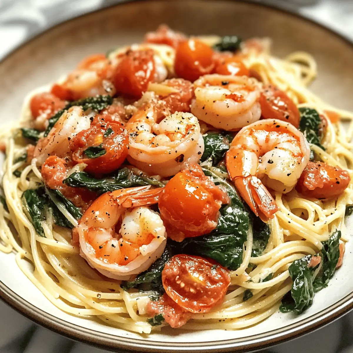 Savory Tomato Spinach Shrimp Pasta Ready in 30 Minutes